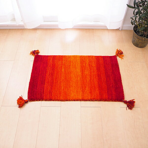 送料無料 玄関マット ギャッべ マット ウール100% オールシーズン 吸湿 放湿 グラデーション インドギャッベ Gradation オレンジ 約45×75cm 高級感 室内 おしゃれ マット エントランス リビングマット センターマット 絨毯 ラグ 玄関