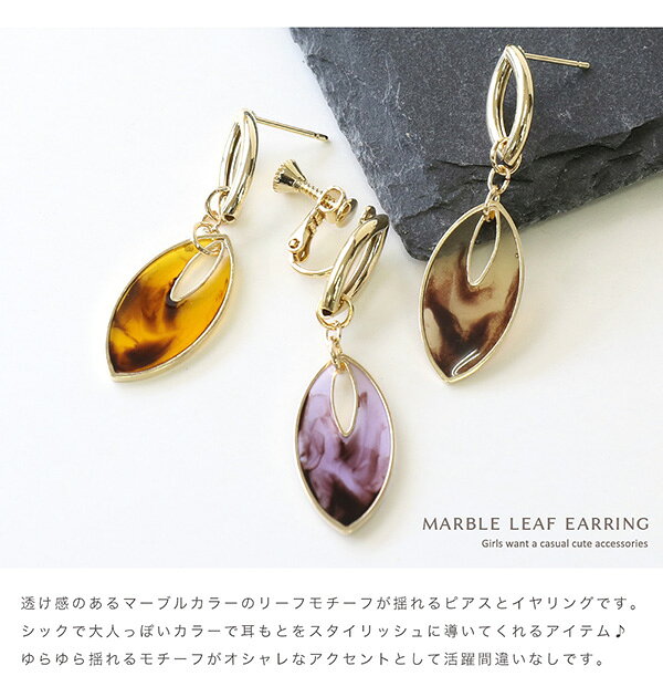 keyword :ピアス イヤリング 金属アレルギー レディース べっこう■□ Item information - 商品説明 - □■ 透け感のあるマーブルカラーのリーフモチーフが揺れるピアスとイヤリングです。